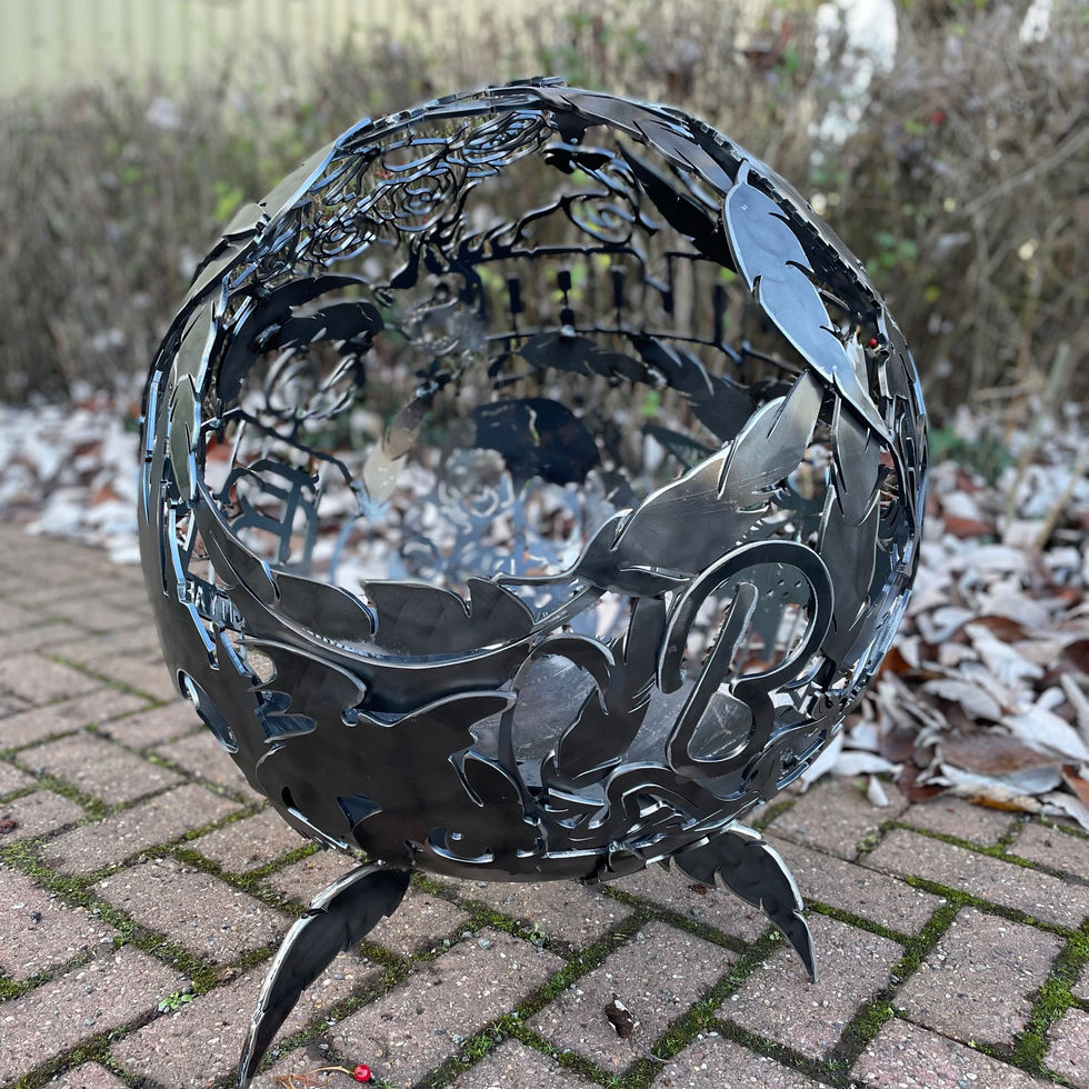 Our client wanted the Fire Globe to represent their 'Favourite Things'... this is what Alex came up with. Contact us to create your own custom fire pit.