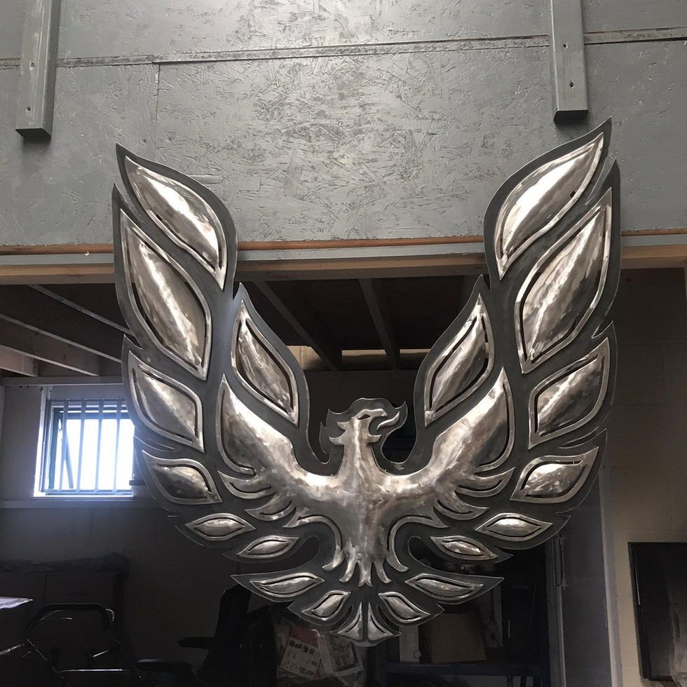 Each panel has then been beaten and shaped by hammer and hand to give the piece a 3D pop. before being welded in place and polished.